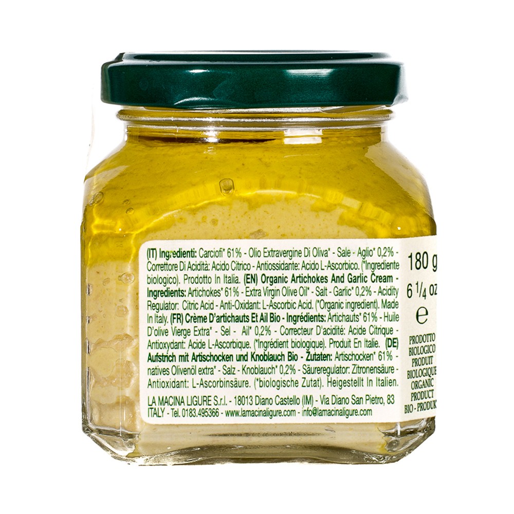 Composition | Artichauts BIO 61%, huile d’olive extra vierge BIO, sel, ail BIO 0.2%. Correcteur d’acidité : acide citrique. Antioxydant : acide L-Ascorbique. |