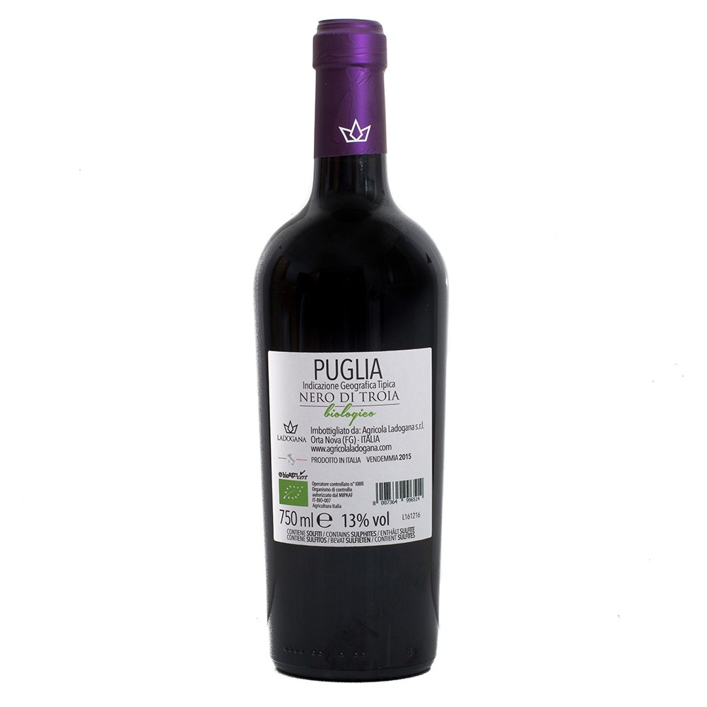 Ladogana ne produit pas de vin d’assemblage, à chaque cépage son vin : Aglianico, Nero di Troia, Primitivo, Greco Puglia, Sangiovese (Orta Nova Rosso), Chardonnay et Syrah.