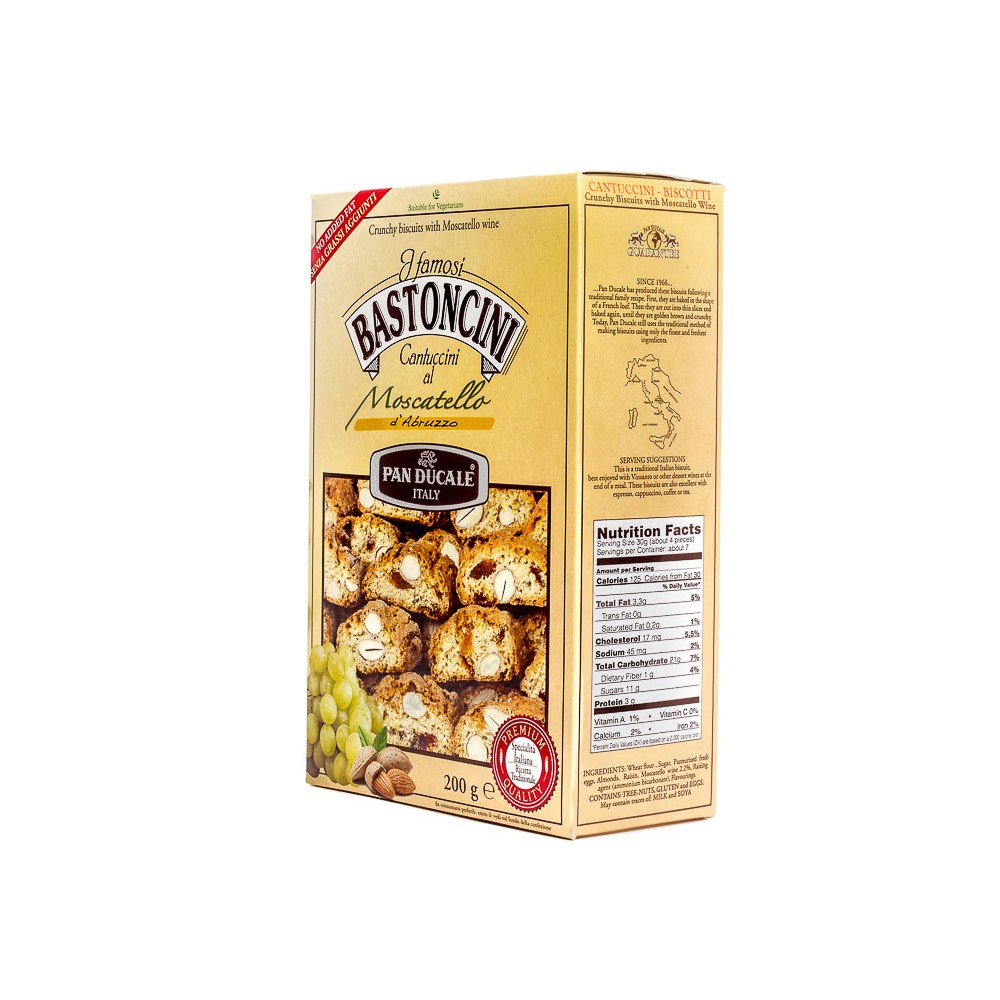 Pan Ducale, installé à Atri dans les Abruzzes, fabrique depuis 1966 des cantuccini selon une recette familiale et en utilisant des procédés traditionnels. Les matières premières sélectionnées avec soins (amandes de Sicile, farines etc.) sont garanties sans OGM, ni conservateurs et sans arômes artificiels.
