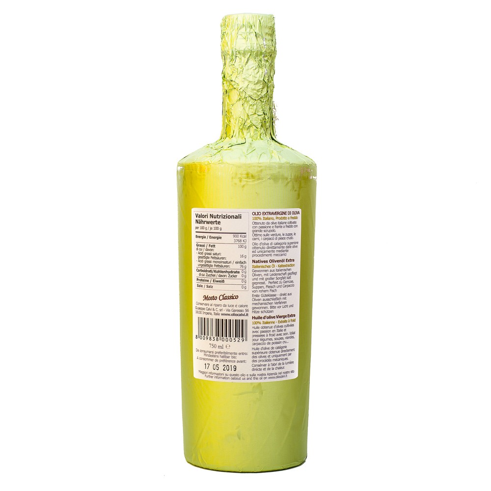 Olio Calvi propose une gamme extrêmement qualitative d’huiles d’olive extra vierge fruitées et parfumées avec un minimum d’acidité. Les variétés d’olives utilisées sont uniquement italiennes, et pour les gammes Riviera Ligure D.O.P. et Mosto Oro ce sont des olives Taggiasca, petites olives typiques de la Ligurie. Sinon, pour compléter sa production, Olio Calvi se fournit auprès de producteurs italiens qui partagent le même état d’esprit : « proposer un produit artisanal bon, naturel, fabriqué par des experts et avec un emballage élégant ».