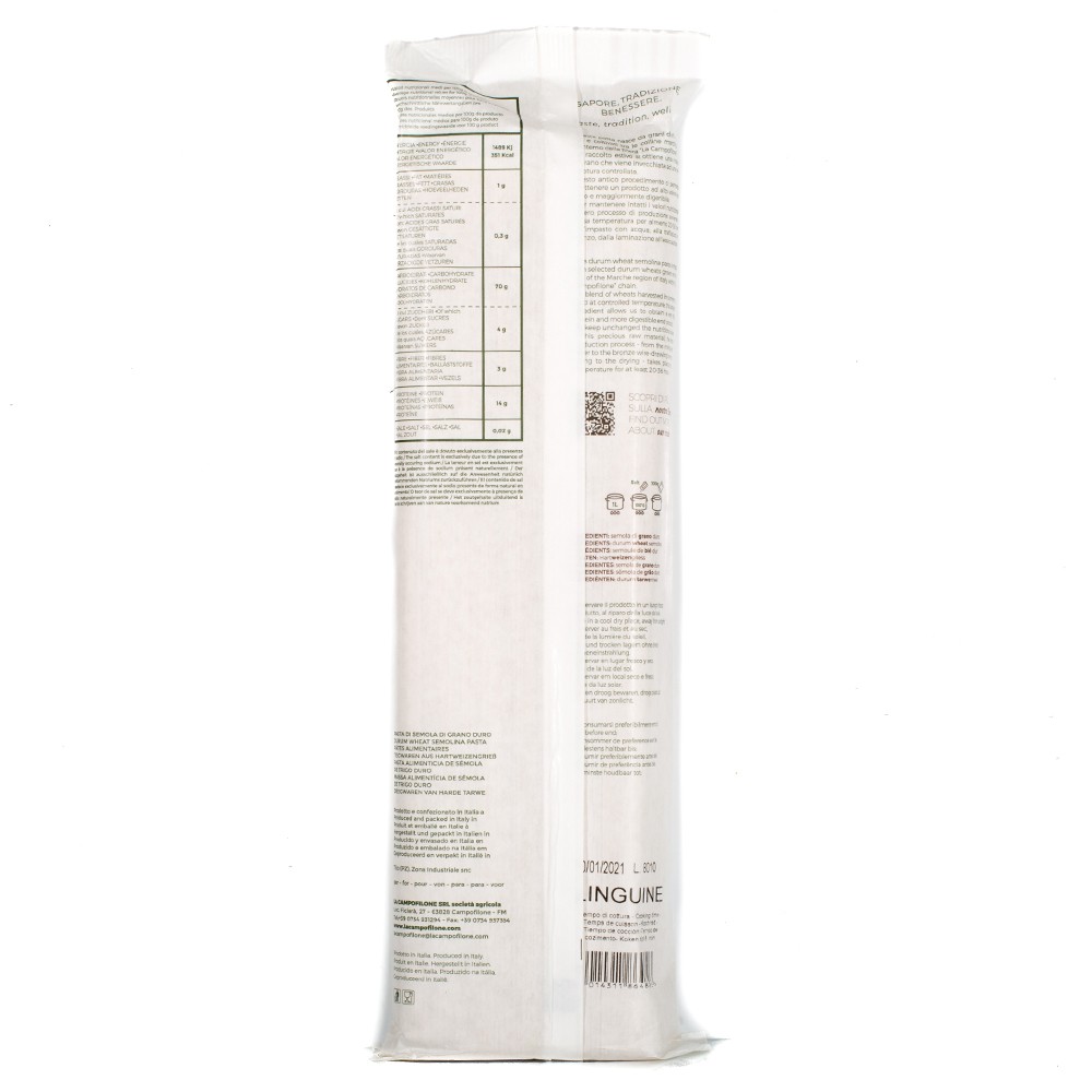 - de la farine de blé dur cultivé sans OGM dans la région des Marches et traité sur place ;